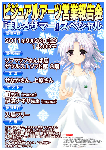 トークイベント『ビジュアルアーツ営業報告会 ましろサマースペシャル』(大阪・日本橋)に参加いたします!